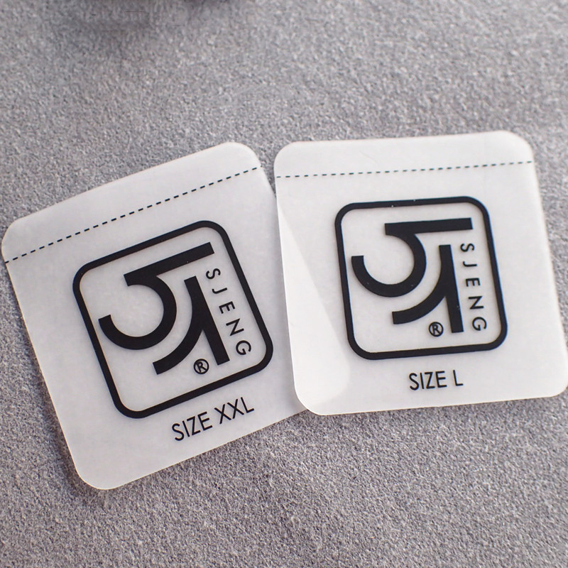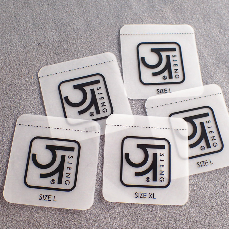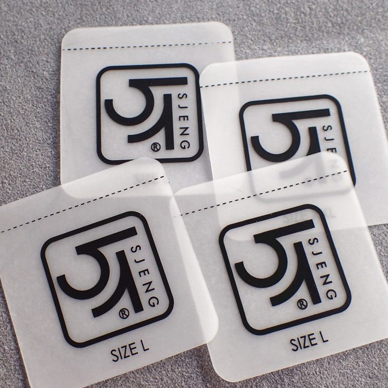 | Nome do produto | Etiquetas de vestuário transparentes personalizadas com impressão por transferência térmica |